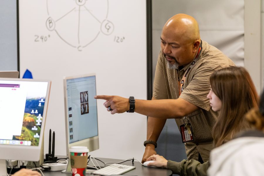 Professor Ron Alabanza teaching graphic design theory to a student in the Digital Media Strategy graduate program